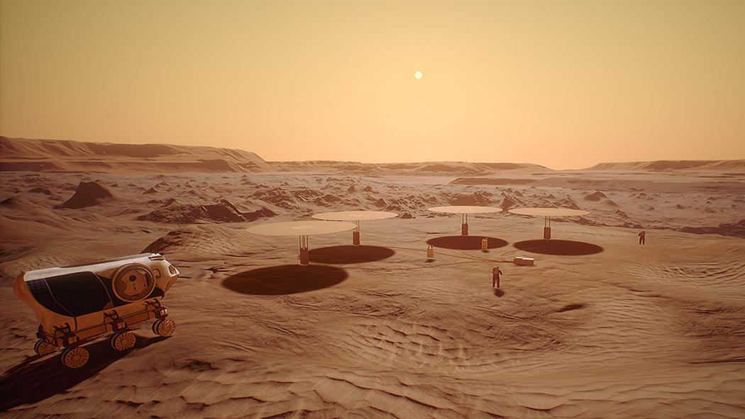 Current designs have evolved with the goal of developing reactors that would generate electricity for such purposes. These on-planet nuclear reactors are intended to be simpler in design [to nuclear engineers, perhaps] with a block of nuclear materials at the bottom creating fission, the product of which is delivered through heat pipes to a Stirling engine converter that generates electricity. A series of these reactors, each looking like a slender pole topped with a saucer, will generate power for making oxygen, purifying water and meeting other needs of humans living in hostile space environments, as well as powering tasks, such as searching for and drilling for water.