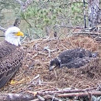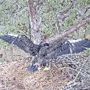 It's been an exciting couple of weeks on the nest! We have had a few sporadic visits from both the male and female eagle, and we have also seen some unfamiliar juveniles visit the nest. One visitor even stayed the night!