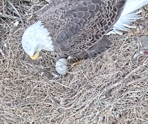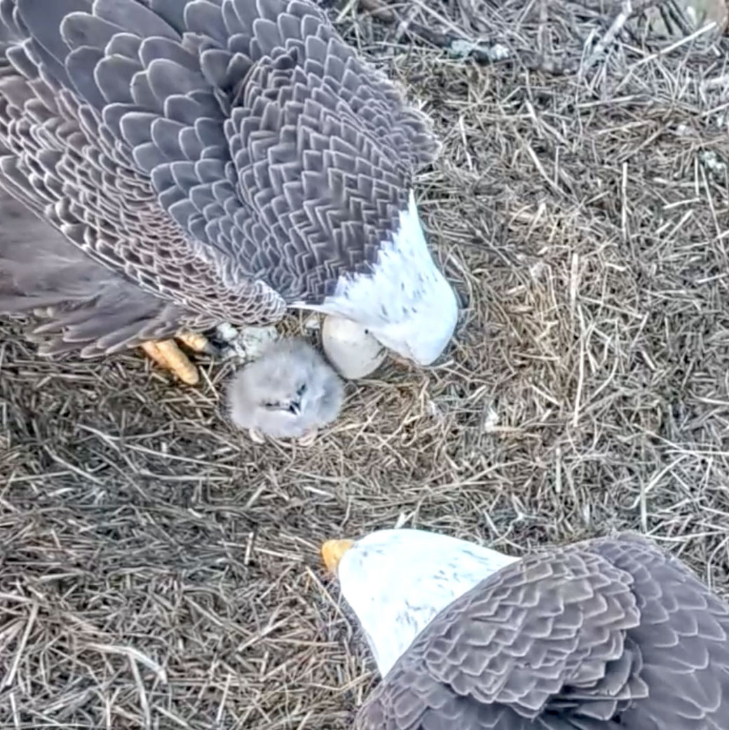 B16 has arrived! This season’s first eaglet hatched on Saturday, January 21st and was fully out of the shell around 5:38pm.